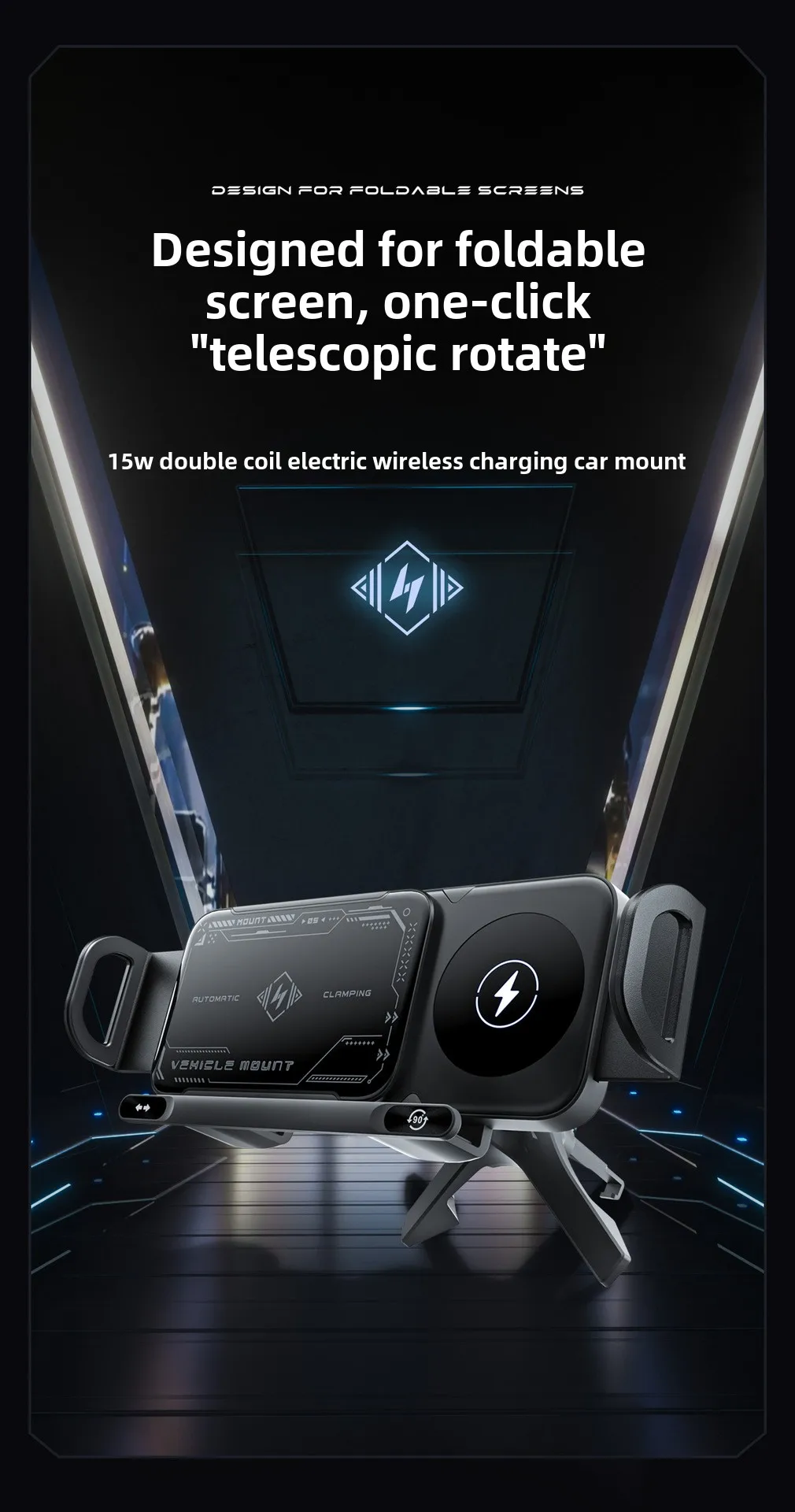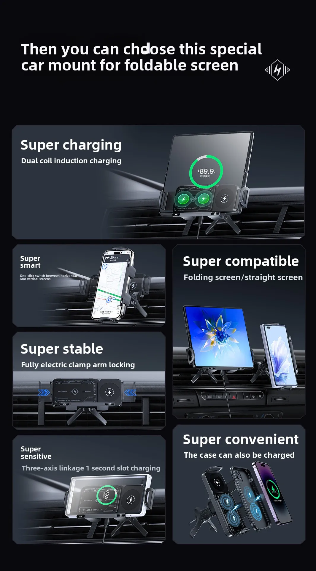 Car Wireless Charger Stand Fold Screen Fast Charging For Samsung Galaxy Z Fold 6 5 4 S24 Ultra iPhone Xiaomi Huawei Phone Holder