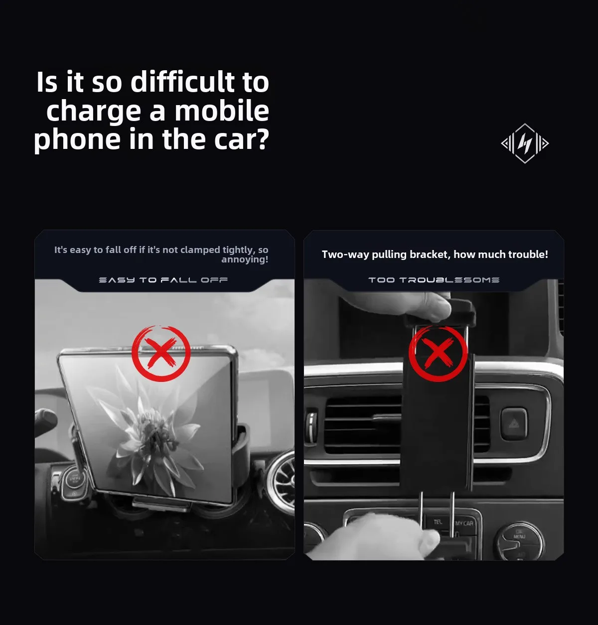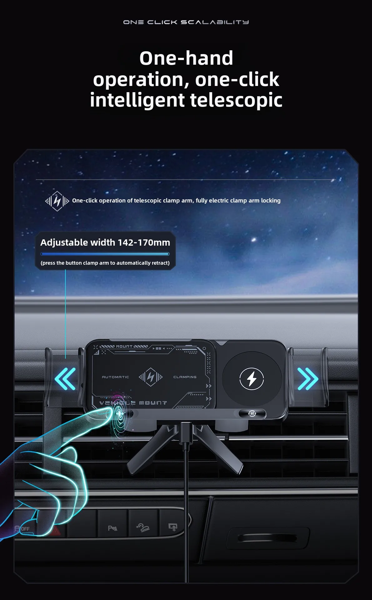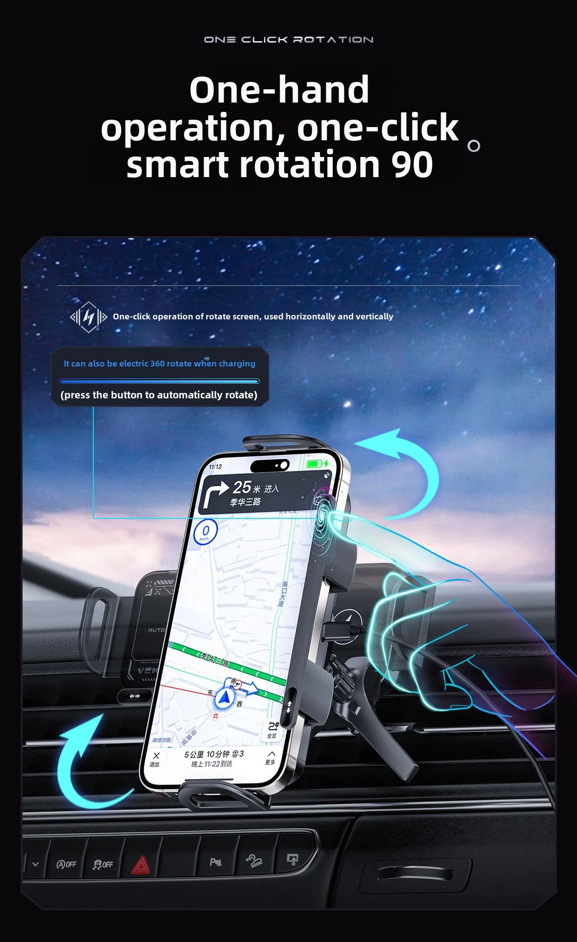 1. Fast wireless charging car mount, clamp navigation & wireless charging at the same time,bring you a safe and convenient driving experience.