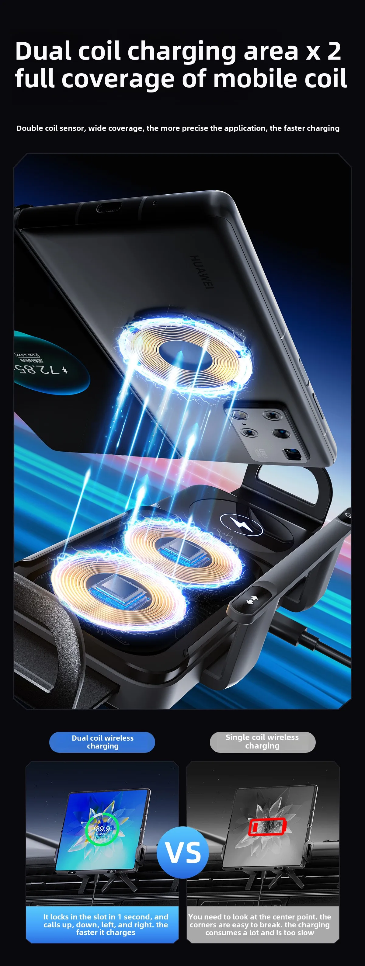 Wireless charging stand dual coil suitable for Huawei Samsung ZFold6 folding screen mobile phone stand