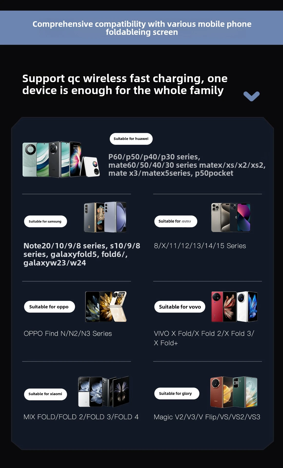 Note: It is for Samsung Galaxy Z Fold 5 4 3 2 1 , Samsung Z Flip Series and Other Smart Phone, for Samsung Fold 4 3 2 to be placed vertically for wireless charging.