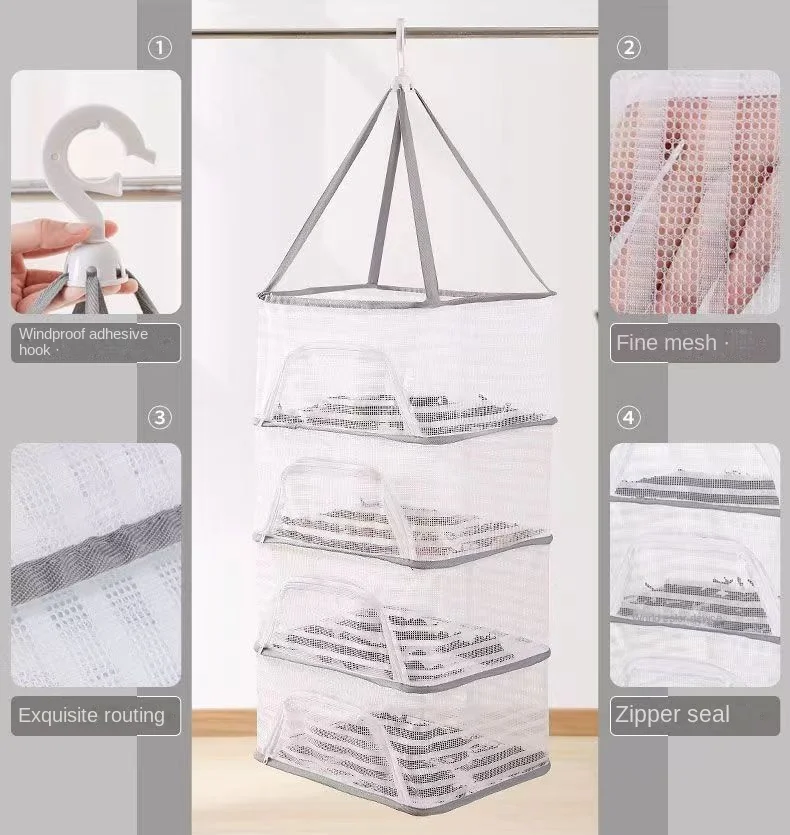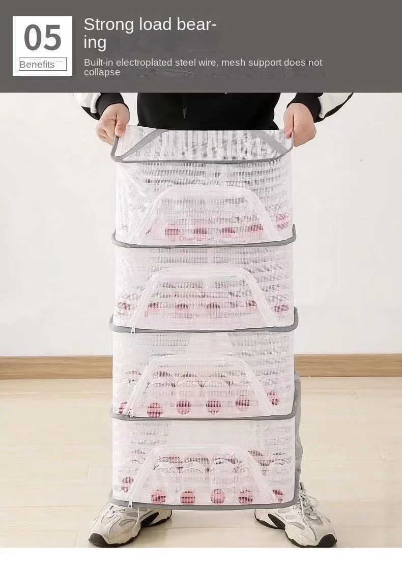 1-3 Layers Foldable Drying Fishing Net Hanging Vegetable Dishes Dryer Cage Household Dryer Bag Mesh Flowers Buds Plants Organize